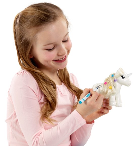 - Personalise your Crayola colour and style unicorn again and again with dry erase markers, beads and a hairbrush